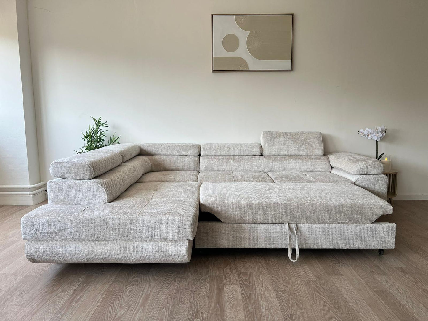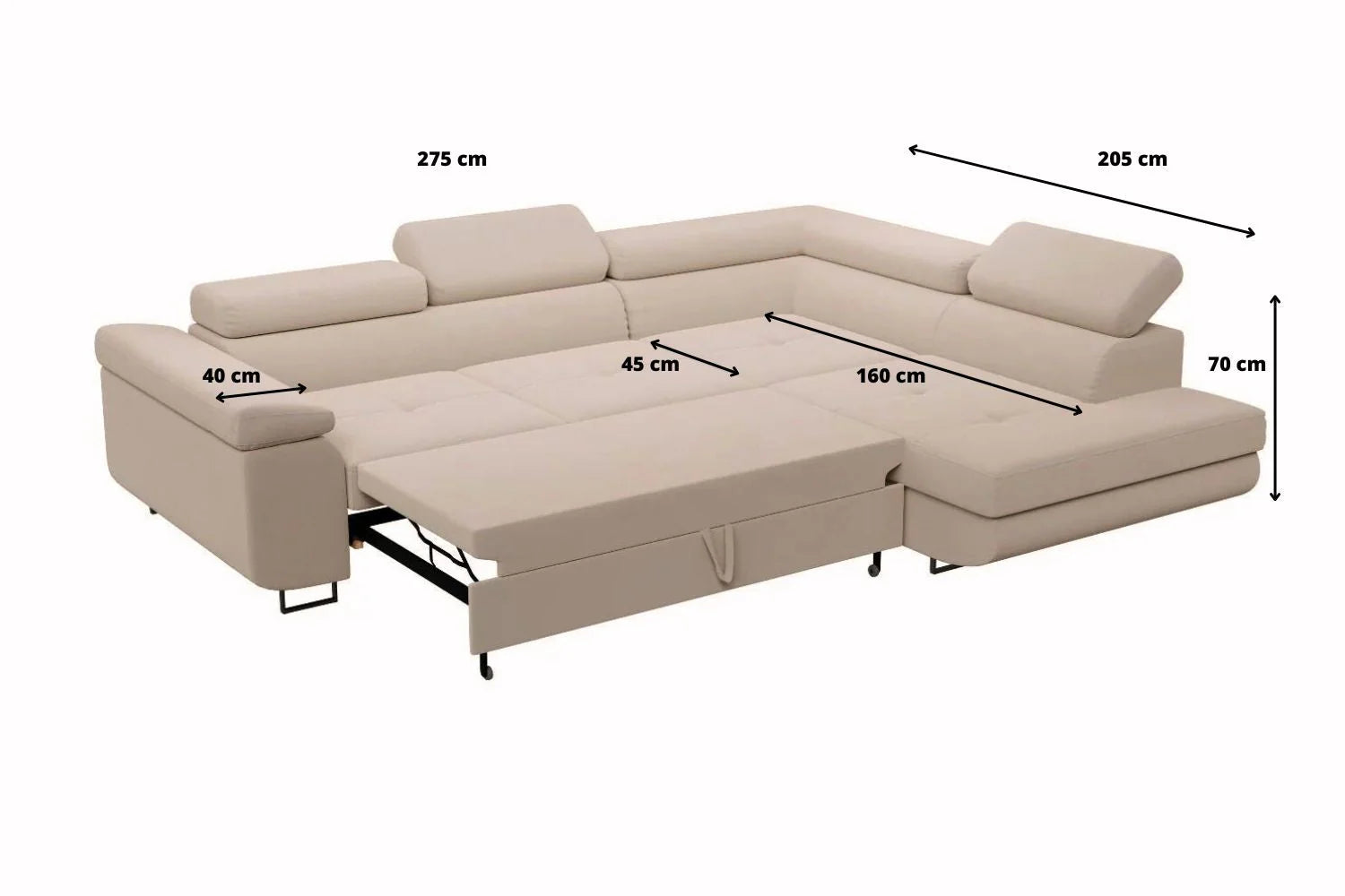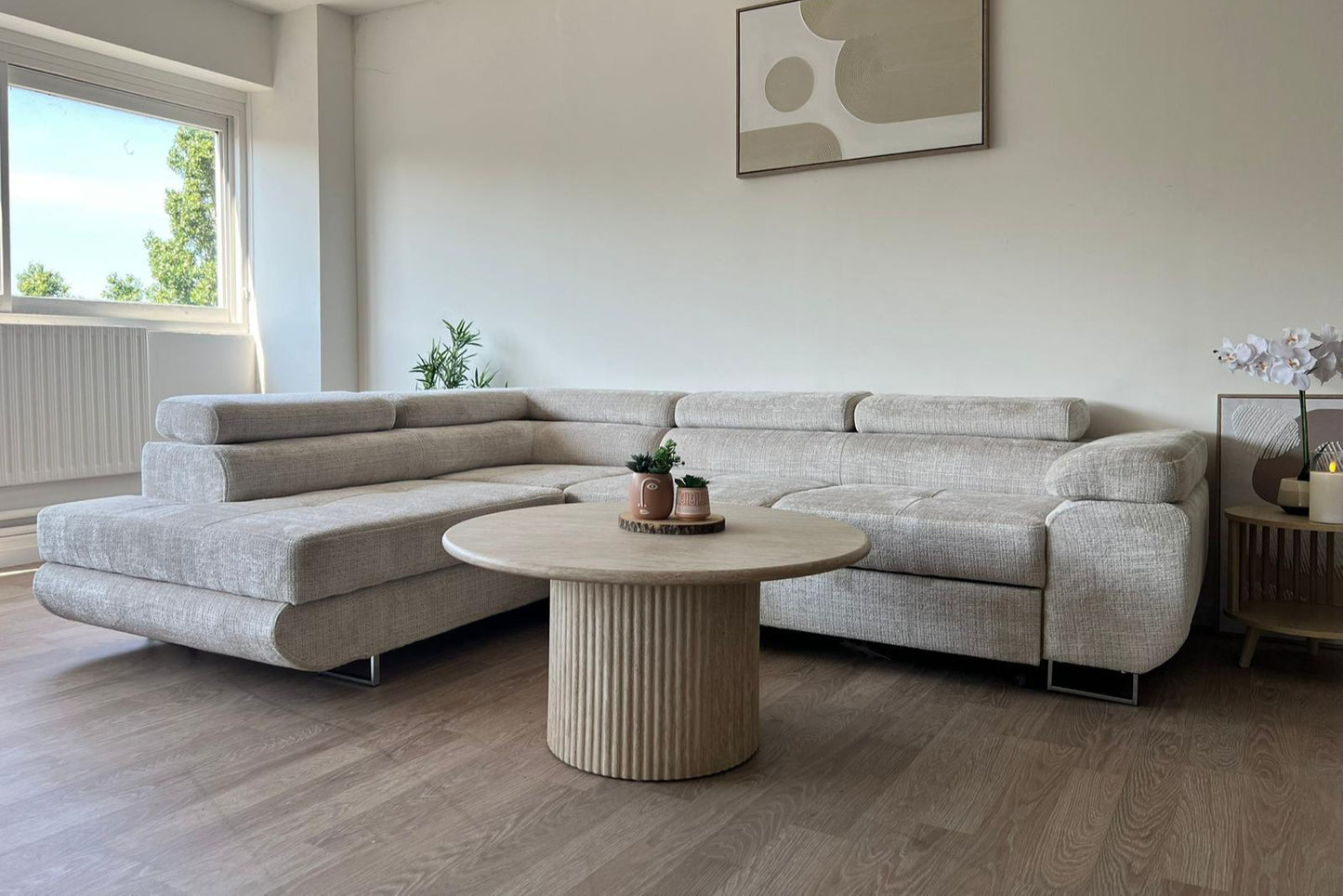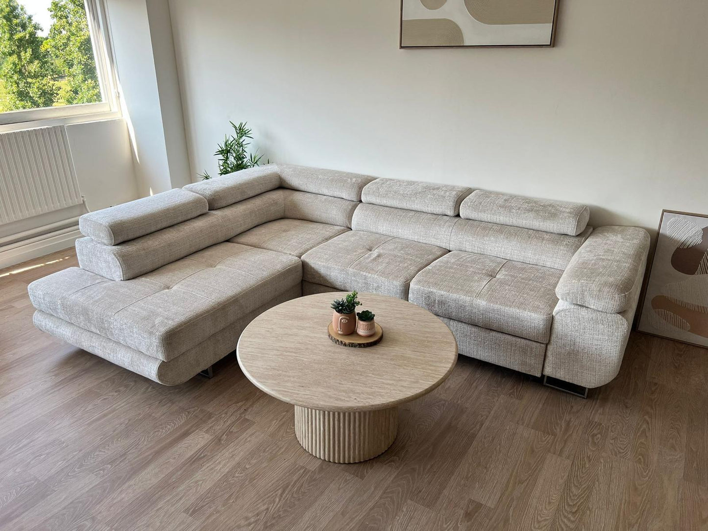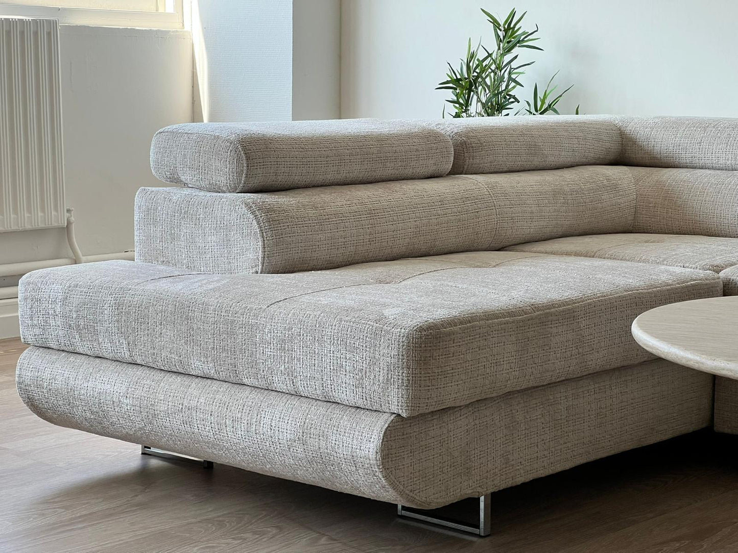 Ce canapé convertible avec coffre intégré constitue une solution idéale pour maximiser l’espace dans votre salon ou pièce à vivre. Sa conversion rapide en couchage confortable offre un lit d’appoint pratique. Tissus Marbella beige.