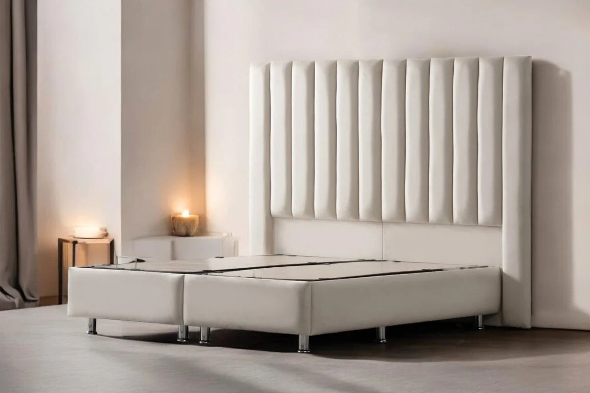 Velours d’exception : Sa tête de lit, haute de 160 cm, est revêtue d’un tissu velours doux et luxueux, ajoutant une touche de sophistication à votre chambre tout en garantissant une allure intemporelle.