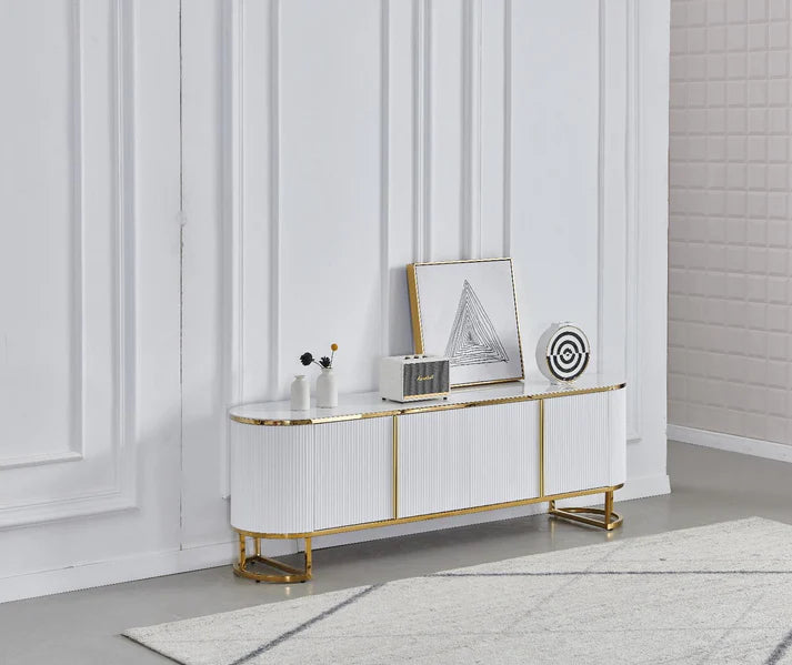 MEUBLE TV "ESMEE" DORE CERAMIQUE NOIR