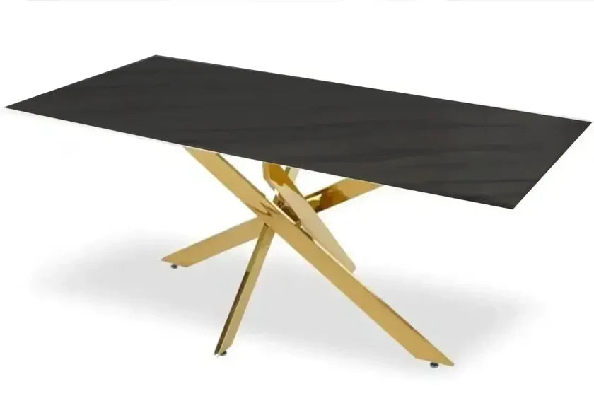 Table à Manger JESSYCA marbre noir pied or